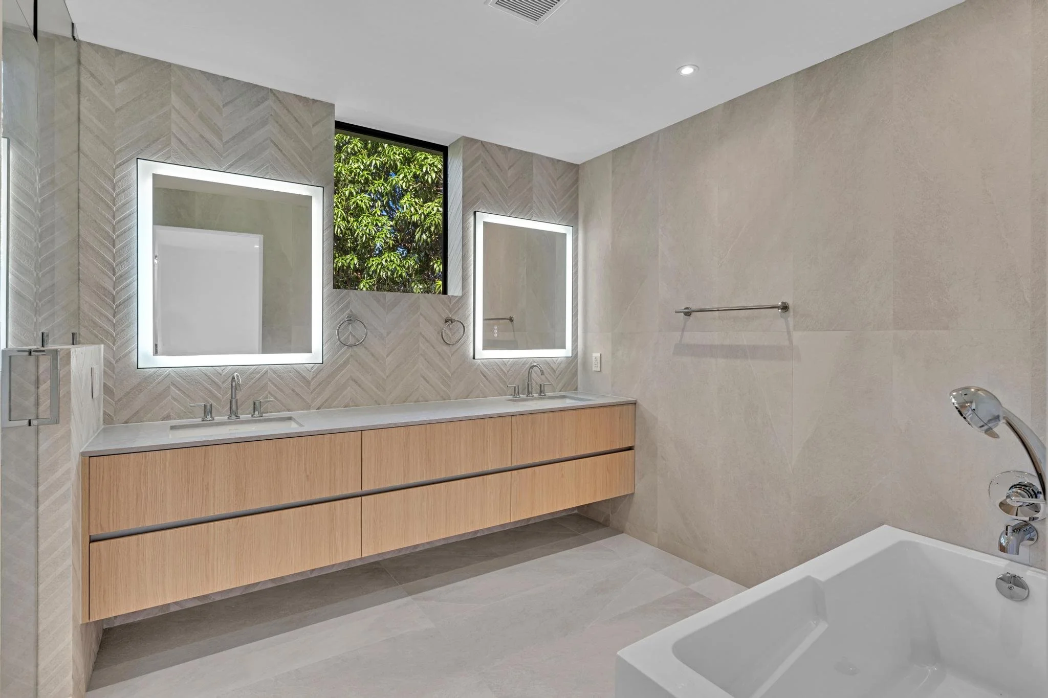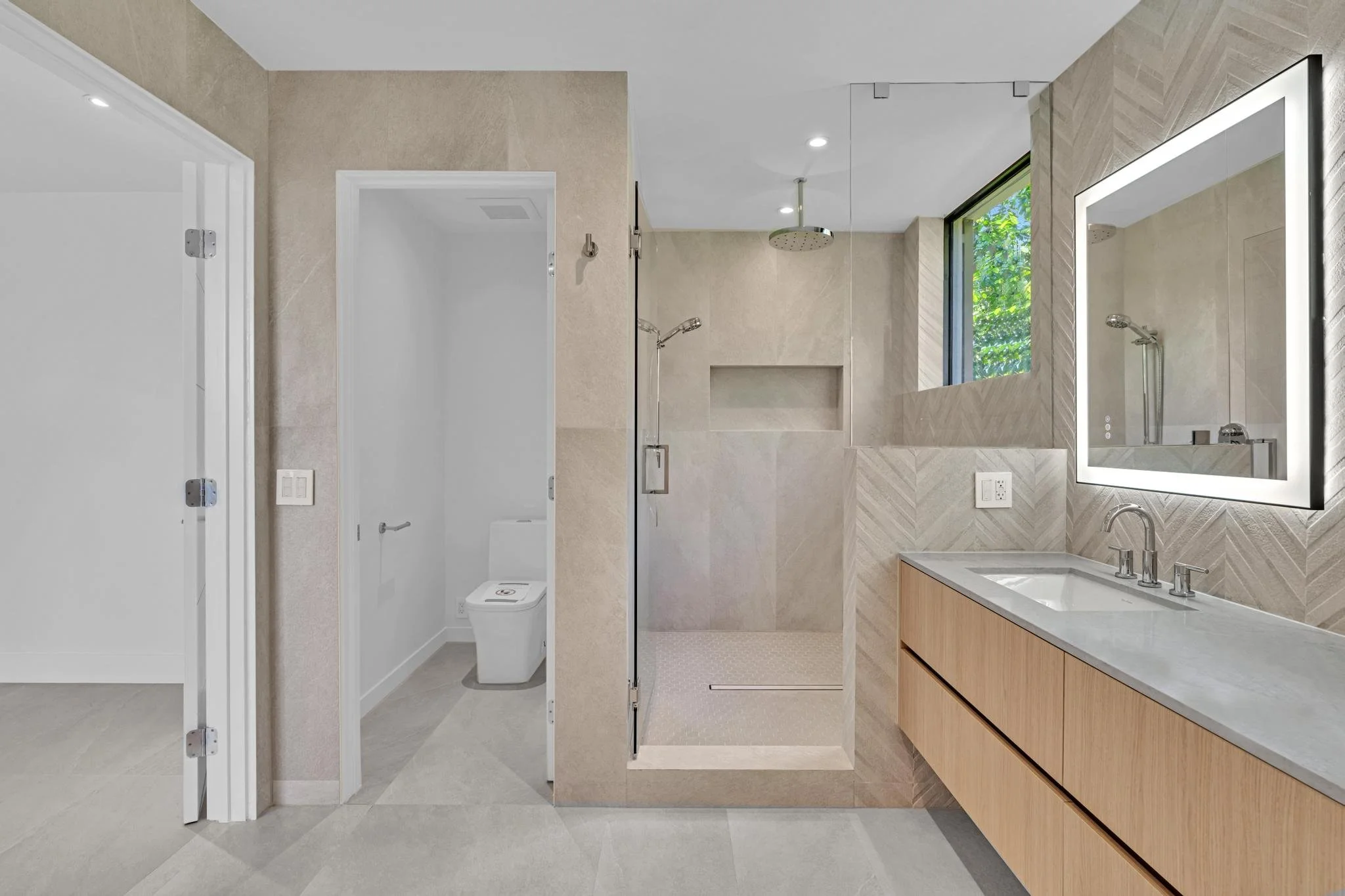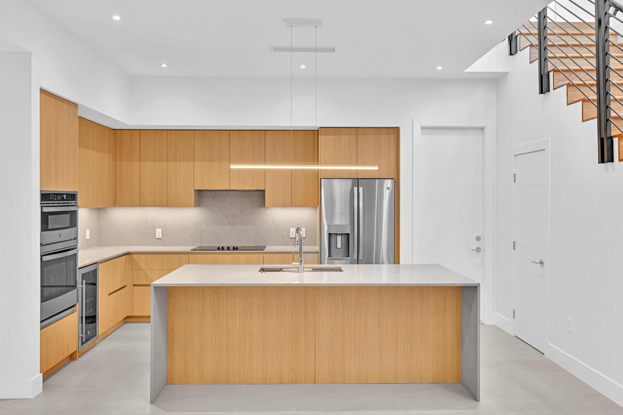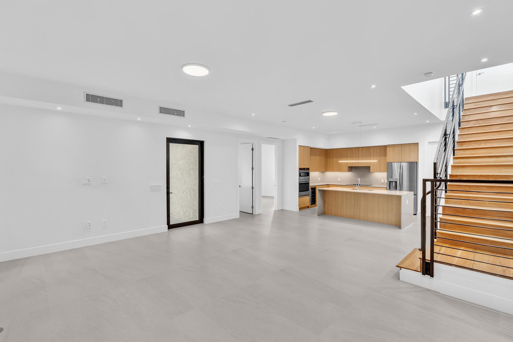 Inside, a restrained palette of wood, stone, and neutral finishes sets the tone for warm, contemporary living. Integrated millwork and custom details bring cohesion, while the architecture’s clarity of form allows flexibility for residents to personalize their homes. Together, the townhomes embody a modern approach to Miami living — sophisticated, efficient, and rooted in the tropical character of Coconut Grove.